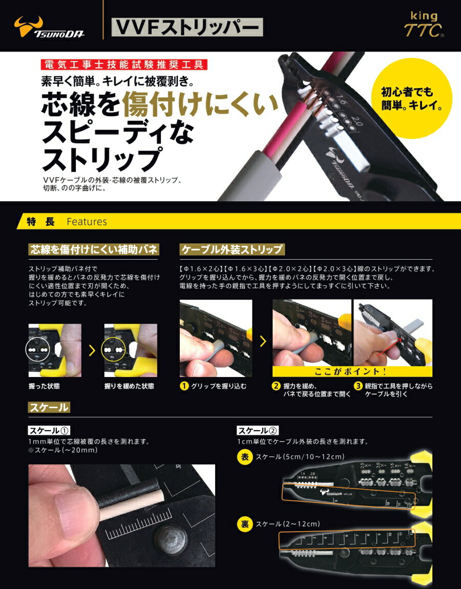 【お得なまとめ買い割引セール実施中】 ツノダ VVFストリッパ― 230mm VAS-230 被覆剥き ストリッパ― 電気工事士技能試験推奨工具 KingTTC TSUNODA