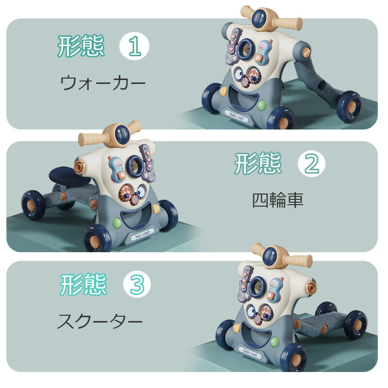 手押し車 ウォーカー ベビーウォーカー 手押し スクーター 赤ちゃん こども 歩く練習 知育 勉強 3in1 ベビー 8ヶ月 効果音 歩行器 歩行補助 知育玩具 おもちゃ ファース よちよち 歩き 型はめ カート かわいい おしゃれ O脚防止