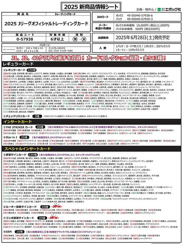 【JCA25】EPOCH【国内サッカー】2025 Jリーグ トレーディングカード パック販売【Jカード/サッカーカード/サッカートレカ/J League】