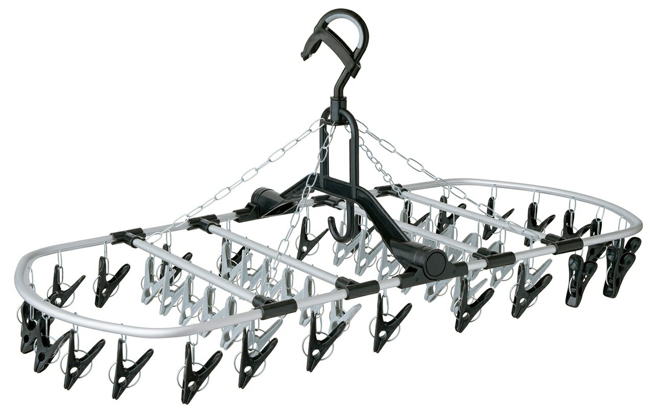 ●アルミフレーム仕様ラバー加工+落下防止ストッパー付き●干しやすさを追求して2種類のピンチで計50ピンチを採用●アルミフレーム仕様でラバー加工して丈夫●物干し竿のサイズは2.8cm〜3.3cmまでに対応※メーカーの都合により、パッケージ・仕様等は予告なく変更になる場合がございます。・色:シルバー・ピンチの色:ブラック、グレー 商品情報 サイズ(約)幅375×奥行770×高さ370mm重量700g生産国中国材質・成分アルミ、ポリプロピレン、エラストマー、鋼線 851923