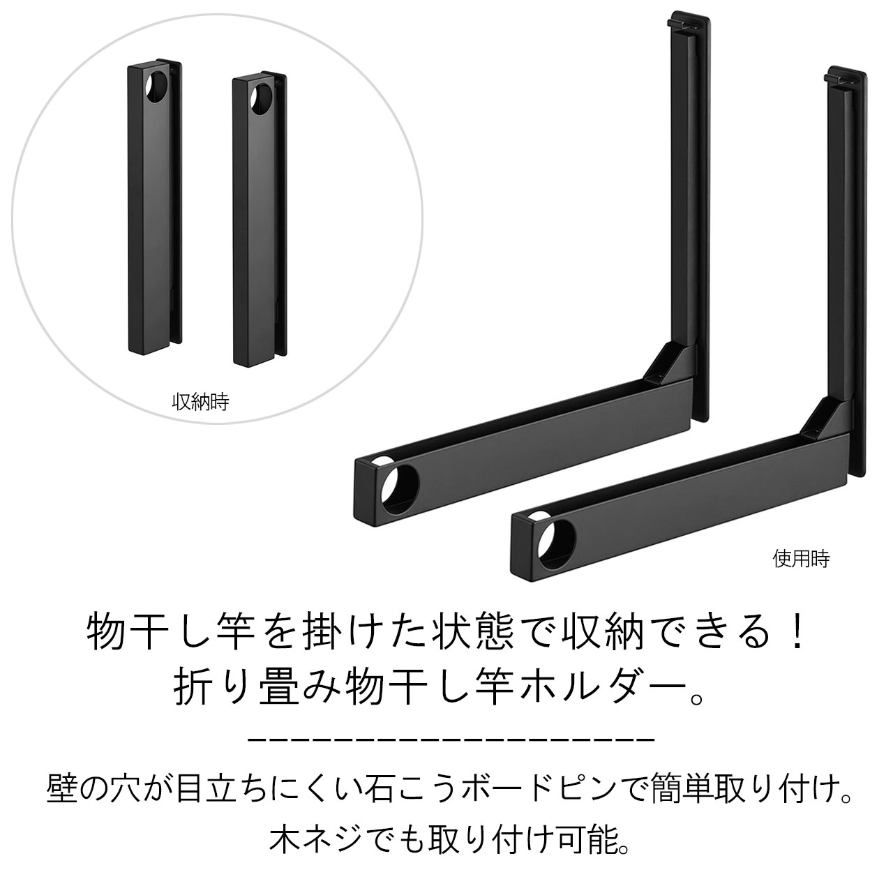 YAMAZAKI 山崎実業 ウォール折り畳み物干し竿ホルダー タワー 2個組 石こうボード壁対応 ブラック ※物干し竿は付属しません。