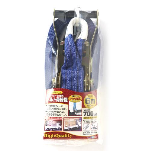 荷物の固定が誰にでも簡単に出来るラチェット式荷締機です。[用途]荷物の固定。[機能]ラチェット式で強く確実に荷締めが出来ます。耐久性に優れたポリエステルベルトを使用しています。端末はしぼり縫製で軽く荷物をキズつけません。[仕様]●ベルト幅:50mm。●ベルト長:巻取5m。●ベルト長:固定1m。●使用荷重:700kg。●破断荷重:3500kg。●端末:シボリ縫製。[材質]●ポリエステル。●鋼。