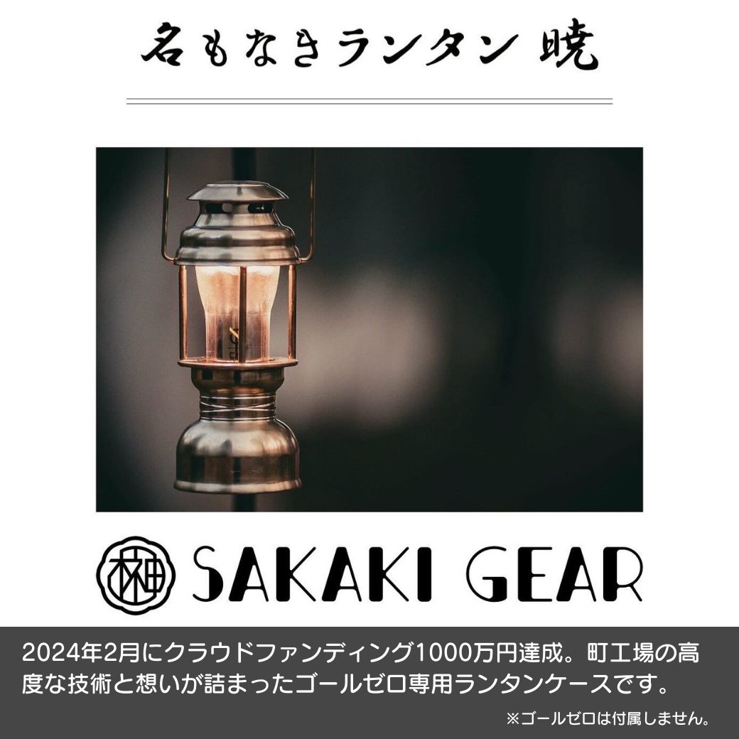 ーーーーーーーーーーー こちらは【名もなきランタン 暁】のページです。 ーーーーーーーーーーー 在庫がない場合はお取り寄せになります。必ず納期をご確認の上ご注文確定ください。 ーーーーーーーーーーー 住所変更やキャンセル等対応できない場合がございます。 発送先住所やご注文内容等お間違えがないか、今一度ご確認の上ご注文確定いただきますようお願い致します。 ーーーーーーーーーーー SAKAKI GEAR(榊ギア) 名もなきランタン 暁 2024年2月にクラウドファンディング1000万円達成した名もなきランタン 暁です。 【ゴールゼロ(GOAL ZERO)対応表】 Lighthouse Micro Flash のみに対応します。 ※他のタイプは対応しておりませんので必ずご確認の上ご購入下さい。 タイプは3種類 真鍮 アルミブラック アルミシルバー ※オレンジ管が付属します。 【経年劣化について】 真鍮は削り出しのため経年劣化致します。 経年劣化をお楽しみください。 ※劣化が気になる人は磨いてください。 ※取り扱いには充分ご注意ください。 【SPEC】 ブランド:SAKAKI GEAR(榊ギア) 商品名 :名もなきランタン 暁 素材 :真鍮、アルミ サイズ :約巾約59mm、高さ約120mm(約178mm取っ手含む) ※本体外径約φ50mm 重量 :約445g(真鍮製)、約160g(アルミ製) ※サイズ・重量若干個体差がございます。 ※ゴールゼロは付属しません。 ※オレンジ管が付属します。 ※ゴールゼロをシェードに取り付ける際、ゴールゼロ本体についている取っ手を外す必要があります。取手をつけたままシェードを被せる設計にはなっていないのでご注意ください。 ※ロゴの位置はロットによって違う場合がございます。 ※ロットにより若干サイズ・仕様が違う場合がございます。 当店はSAKAKI GEAR(榊ギア)正規品取扱店です。 こちらは SAKAKI GEAR(榊ギア) ゴールゼロ専用ランタンケース 「名もなきランタン 暁」 のページです。 検索ワード 名もなきランタン 暁 名もなきランタン クラファン キャンプファイヤー ランタン ランタンケース ゴールゼロ Goal Zero 真鍮削り出し LEDランタン おしゃれ 重厚 経年劣化 マニア 真鍮マニア キャンプ ソロキャンプ アウトドアインテリア おうちキャンプ ベランピング おしゃれ プレゼント お祝い クリスマス 父の日 母の日 誕生日 敬老の日 入学 入学祝い バレンタインデー バレンタイン ホワイトデー ホワイト クリスマス 卒業祝い 就職祝い 退職祝い 【ご注文の際の注意点】 こちらの商品はギフトラッピング対象商品です(有料 税込330円)ギフトラッピングをご希望の場合はご購入手続き画面で『ラッピング』を選択して下さい。 ※モニタの発色により、実物と色が異なる場合がございます。 ※商品ページに【あす楽】【即日発送】の表記があっても、ご入金確定のタイミングや予約商品、お届け先が対象エリア外の場合は【あす楽】【即日発送】できない場合がございます。 ※日時指定や時間指定されますと自動的に【あす楽】対象外になります。【あす楽】ご希望の場合は日時指定をされないようご注意ください。 ※サイト上に最新の商品情報を表示するよう努めておりますが、メーカーの都合等により商品規格・仕様が変更される場合がございます。このため、実際にお届けする商品とサイト上の商品情報の表記が異なる場合がございます。最新の情報はメーカーHP等をご確認いただきますようお願い致します。 ※在庫管理には厳重なる管理を行っておりますが、実店舗および他ショッピングモールとの在庫連動システムの関係上、まれに欠品しているものについても在庫ありと表示され、購入可能となっている場合がございます。万が一欠品の際は別途連絡させていただきます。何卒ご容赦いただきますようお願い致します。 ※欠品などでキャンセルとなった場合でもモール主催の買い回りなどの失効ポイントの補填は致しかねますのでご了承お願い致します。 ※本商品はご注文のタイミングやご注文内容によっては、ご注文のキャンセル、修正を受け付けることができない場合がございます。カラー・サイズ、発送先などご確認の上ご注文確定いただきますようお願い致します。ーーーーーーーーーーー こちらは【名もなきランタン 暁】のページです。 ーーーーーーーーーーー 在庫がない場合はお取り寄せになります。必ず納期をご確認の上ご注文確定ください。 ーーーーーーーーーーー 住所変更やキャンセル等対応できない場合がございます。 発送先住所やご注文内容等お間違えがないか、今一度ご確認の上ご注文確定いただきますようお願い致します。 ーーーーーーーーーーー SAKAKI GEAR(榊ギア) 名もなきランタン 暁 ゴールゼロが趣きのあるランタンに変身。SAKAKI GEARから「名もなきランタン 暁」が登場。 要望の多かった電源ON/OFFをトップキャップを押すだけで3段階の調光を操作できるように改良。 町工場の高度な技術と想いが詰まったゴールゼロ専用ランタンケースです。 【Point.1】ゴールゼロのLEDランタンが趣きのあるランタンに変身 多