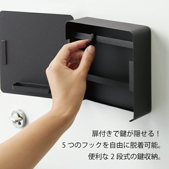 tower マグネットキーフック2段 タワー / 北欧 キーボックス キーフック キーBOX KEY BOX 鍵収納 キーケース 玄関収納 リモコンキー収納 ドア貼り付け 目隠し 簡単 使いやすい 扉付き ドア付き 蓋付き フタ付き シンプル モノトーン 白 黒 ホワイト ブラック