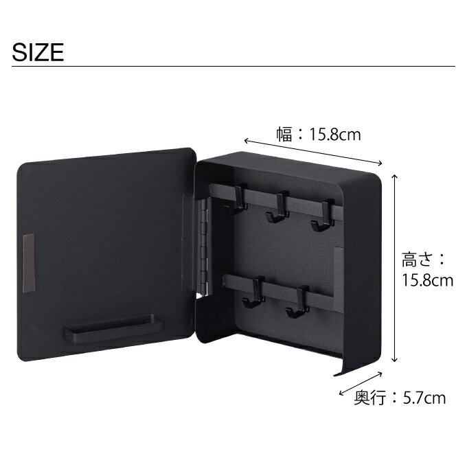 マグネットの付く玄関扉に付けるだけ!扉付きで鍵が隠せる! 5つのフックを自由に脱着可能。便利な2段式の鍵収納。商品詳細 商品名tower マグネットキーフック2段 タワー ポイントマグネットの付く玄関扉に付けるだけ!扉付きで鍵が隠せる! 5つのフックを自由に脱着可能。便利な2段式の鍵収納。 サイズ約幅15.8×奥行5.7×高さ15.8cm 素材扉・本体/スチール(粉体塗装)、フック/ABS樹脂、マグネット 対応サイズ[取り付け可能な壁面] マグネット使用時/マグネットがつく平らな面・スチール壁面 木ネジ使用時/柱・板壁・プリント合板(裏側に水平にサンがある場所) 上部バーと下部バーの距離約6.2cm 耐荷重本体/約1kg 生産国中国 付属品木ネジ×2
