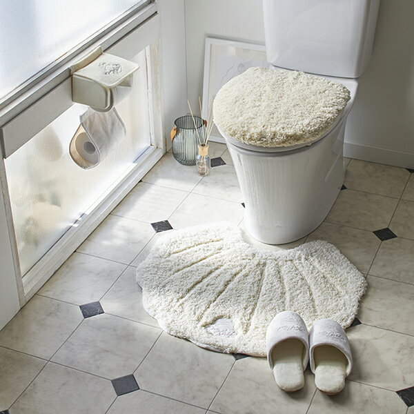 【P5倍!20日-27日1:59】メリージェラートミルキーシェルトイレ4点セット(ふたカバー・マット・スリッパ・ホルダーカバー)|姫系 かわいい クラシック ガーリー アンティーク風 ロリータ