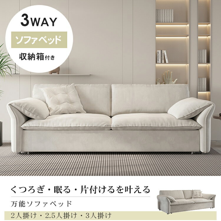 P8倍 11/21迄【3年保証】ソファベッド 収納箱付き ソファーベッド ソファー ソファ 2人掛け 2.5人掛け 3人掛け 3way 収納付 二人掛けソファ 三人掛けソファ 収納 l字 2P 肘付き 省スペース 大きめ グレー ベージュ ブルー ブラウン 来客対応 リビング 大型 高級感
