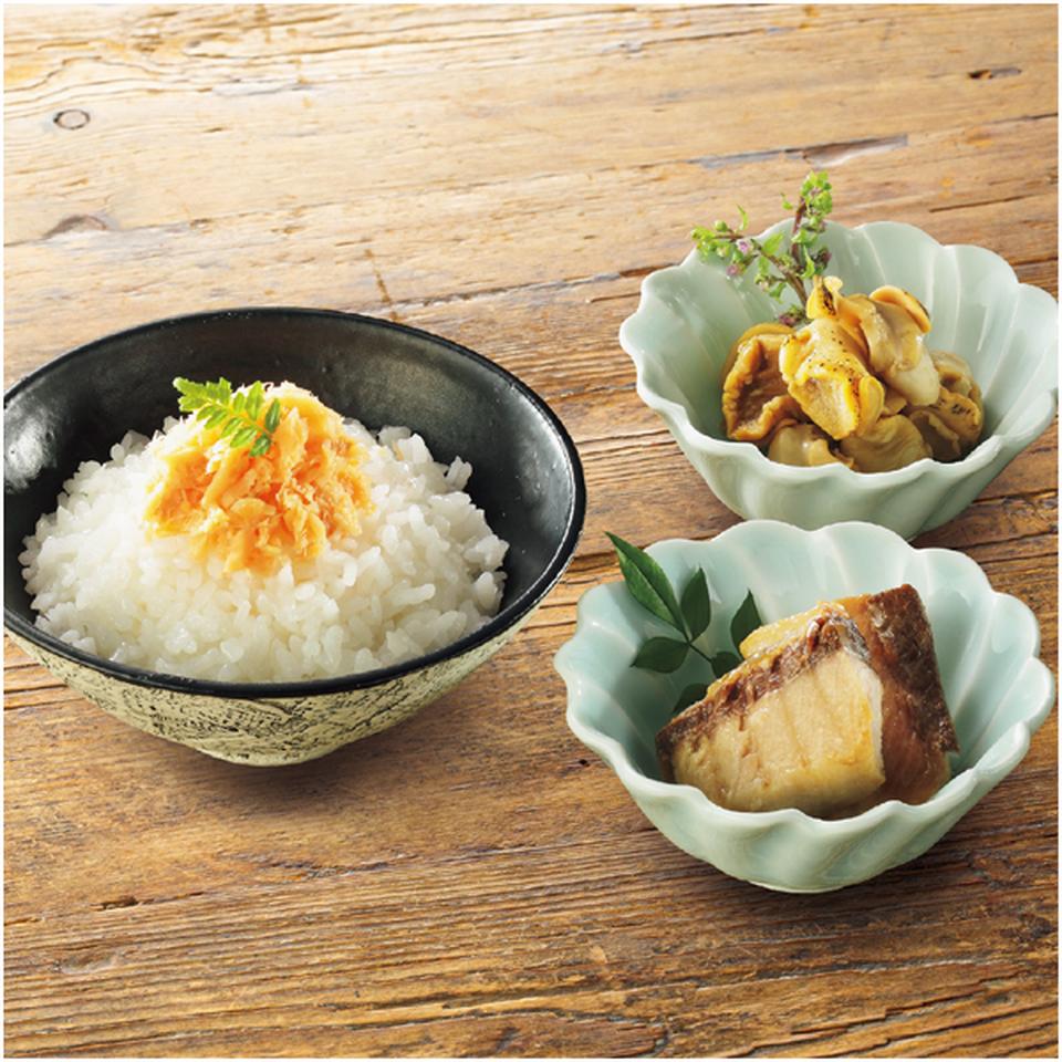 【冬の贈りもの】加島屋加島屋の味覚詰合せ(中瓶3本)[大切な人に贈る、ほっとくつろぐ、とくべつな時間]【ご予約は12/24(水) 15時まで】60年以上愛され続ける「加島屋」の味わいの定番「さけ茶漬」をはじめ、おすすめの味覚を詰合せにしました。●商品詳細:さけ茶漬130g、焼きぶりの白醤油漬100g、つぶ貝の酒香煮90g●原料原産地:カナダ又はロシア又は米国(キングサーモン)、国産(ぶり)、英国(つぶ貝)●賞味期限:冷蔵にて30日間●特定原材料:小麦、さけ、大豆●配送温度:冷蔵※商品のご注文・お届け・キャンセルについて 複数個口のご注文も個別に配送します こちらの商品は「エコ包装」でお届けします ギフト商品は、発送手配開始後のキャンセルは原則お受けできません。 こちらの商品には、配送料が含まれております。予めご了承ください。※画像はイメージです。2
