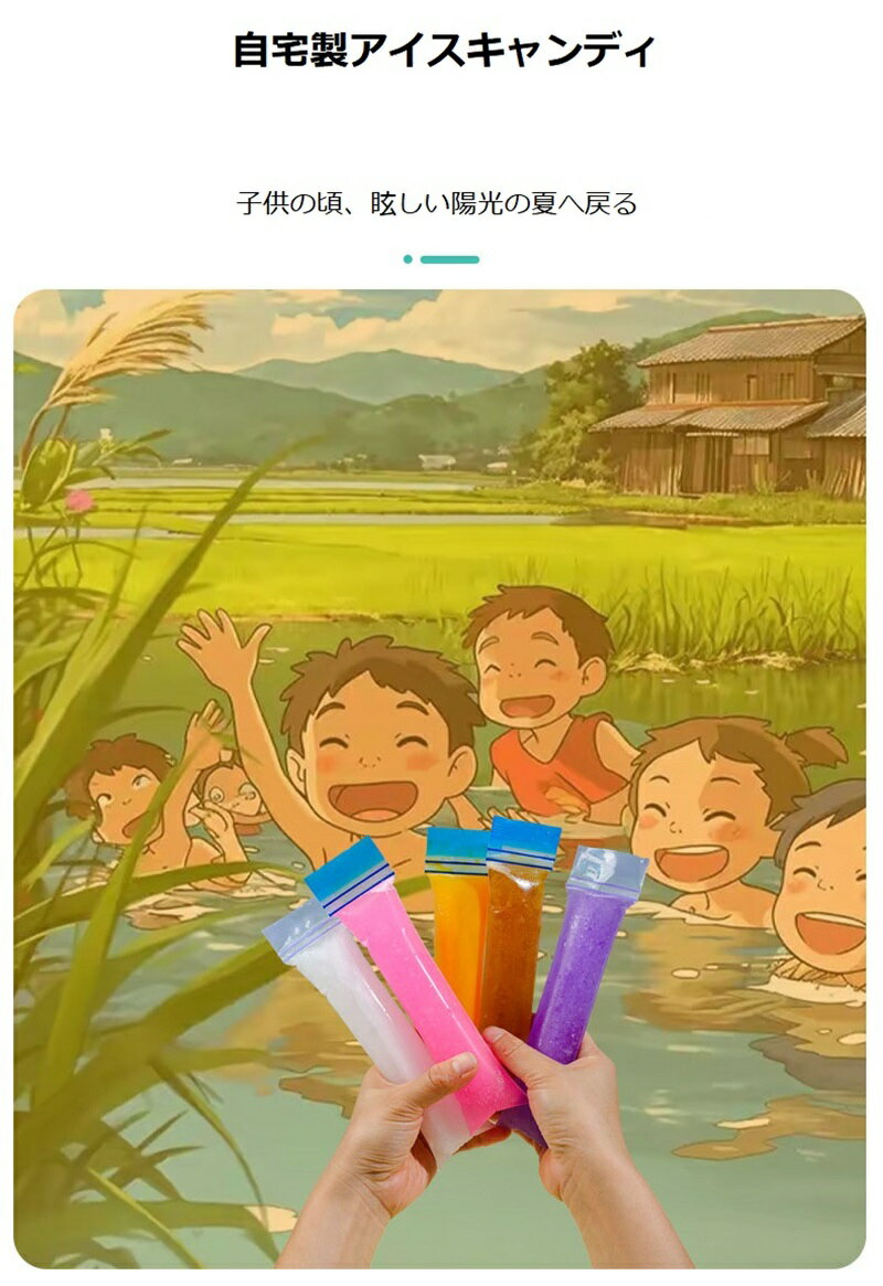 ボトルに入れやすい棒状の氷が簡単に作れる製氷袋100枚セット。 ダブル骨条シールで使い勝手も抜群。使い捨てで使えるので衛生的。 安全かつ耐用の素材でつくられます。良好な密封性があります。 棒状の氷が作れるので夏場の水筒の保冷におすすめ! 暑い夏、ボトルに氷を入れたいけれど、ミニボトル等は氷が入らないことも。 アイスキャンディも作れて夏の販促にぴったり。 サイズ 100枚セット