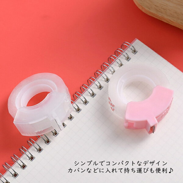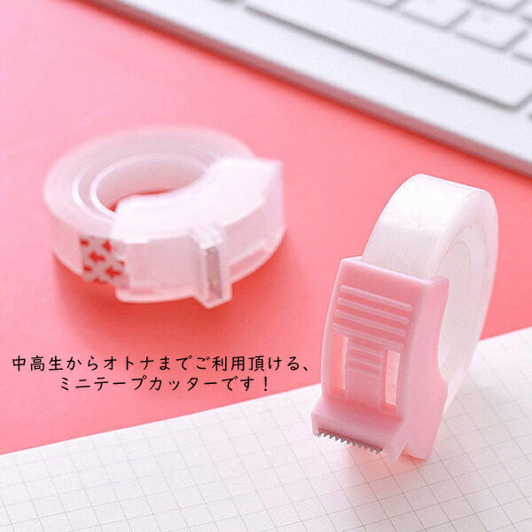 テープカッター セロテープ付き 2組セット セロテープカッター ミニサイズ コンパクト 持ち運び便利 シンプル 学校 オフィス お花屋さん レジ 包装 文具 文房具 セロテープ用 ホワイト ピンク
