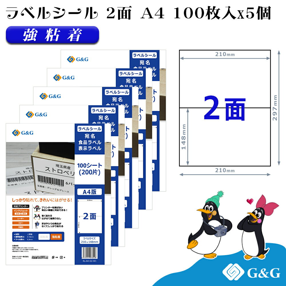 【特価】G&G ラベルシール FBA対応 A4 100枚 6面 幅105mm 高さ99mm 強粘着 宛名 納品 メール便