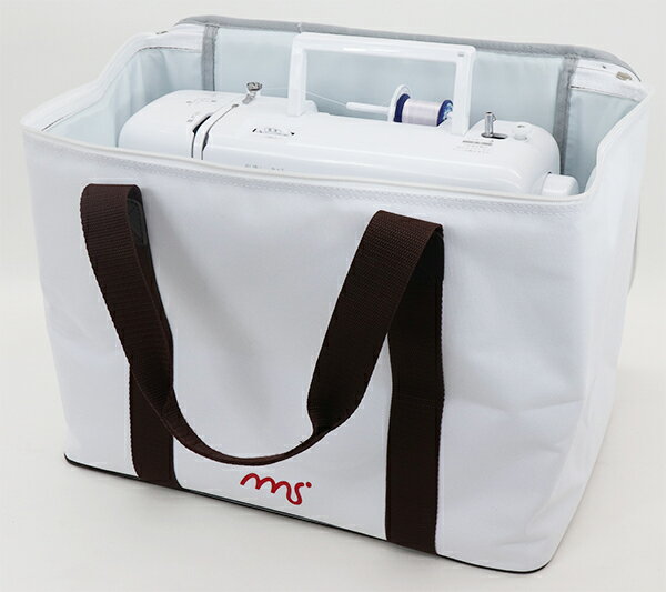 ミシンの収納にも持ち運びにも便利なキャリングバッグの登場です。 メーカー付属品やオプションで購入できる純正品のカバーがない機種でも安心。 「ソフトカバータイプは、収納に不安がある」、また「ソーイング教室やご友人の家に通う際に収納できるケースがないため非常に不便」というお客様のお問い合わせが多くございました。 ソフトカバーは埃よけのための薄いビニール製のため、保護性は低く 収納時や移動時にミシン本体に衝撃が加わりダメージを受ける場合も多々あります。 キャリングバック本体は清潔なホワイト色、持ち手、ファスナー部分にはチョコブラウン色でアクセントを付けました。 ■主な特長 1、素材 衝撃吸収材入りの厚手のナイロン素材のため、衝撃を最小限に防ぎます。 2、オープンファスナー式 これまでのデザインは、前面からミシンを入れるため、「ミシンが重くて入れられない」等のお声がございました。 そこで、新型のバックは上部から収納するタイプに改良し、簡単に収納できるデザインになっています。 3、オールインワンタイプ 底部分も含めて完全収納されますので、ほこりなどが入ることもなく、常にベストコンデションが保てます。 4、ダブルフック式持ち手 持ち運びの際に安定感を保てるよう、持ち手部分を2箇所取り付けましたので、シングルフック式(1箇所)に比べて安定感抜群です。 (2箇所ある持ち手部分をひとつにまとめることもできます。) ■サイズ 外寸:縦31.5cm、横41.0cm、奥行25.5cm 内寸:縦29.0cm、横40.0cm、奥行24.0cm ■主な対象ミシン ブラザー: PS207X、PS205X、PS203X/PS202X、MJ55、PS102X、かがり4 ジャガー: KJM-1101W、KJM-1301W シンガー:S-017 JUKI: HZL-NS45ES、HZL-40DXm、HZL-40NS/HZL-290S/HZL-40S、MO80CB、MO114DN、MO1000M、MO50eN ジャノメ:NP860 ※標準付属のハードケースを付けた状態では入りません ベビーロック: BL501、BL5700EXS、BL57EXS、BL69WJ、BL65EXS、BL72S など ※2枚目の画像は、シンガーミシン「S017」での収納例となります。 ※3枚目の画像は、ロックミシンでの収納例となります。 ※5枚目、6枚目の画像は、PS200Xシリーズでの収納例となります。 ミシン本体サイズがバッグ内寸よりも大きいですが、収納可能です。 ※JUKI MOシリーズは糸立てアンテナを外した状態で収納してください ※MO2800、MO3000はバッグに入りません ■販売日■ 2018年2月22日よりデザインをリニューアルし販売開始いたしました。