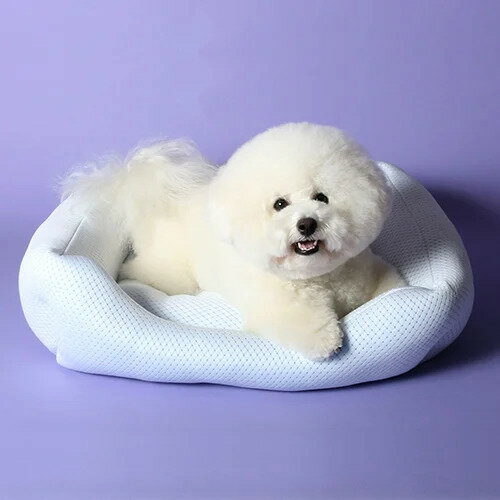 商品説明 ★超クールシリーズ暑い日を快適に過ごすことができる、接触冷感シリーズです。プレミアムラインは、ベッド本体のカバーが外せるのでお手入れが簡単♪暑さに弱いワンちゃん・ネコちゃんにとって快適な空間を作り出します。周囲が囲われているスクエア型ベッドは、ワンちゃん・ネコちゃんに安心感を与えることができます。縫製は日本国内で行っています。"超クール" の秘密冷感測定において、最大熱吸収速度(Q-MAX値)が高レベルの 0.32 を計測!(Q-MAXの値が大きいほど、生地を触った時に冷たく感じます。)暑い日をより快適に過ごせるよう、熱伝導性の高いポリエチレンを外側に、熱伝導性の低いポリエステルを芯として内側に使用した糸を開発。熱を拡散することで、接触冷感を高めました。また、使用している糸は単なる1本の糸とは違い、220本の非常に細い繊維を束ね撚り合わせています。そうすることで接触面を増やし、熱伝導性を最大限にしました。※非常に暑い場所では、充分な威力は発揮しません。お手入れ方法●ヌード・カバー・クッションすべて、手洗いで丸洗いしていただけます。●カバーとクッションは洗濯機でのお洗濯も可能です。 洗濯機で洗う場合は必ずネットに入れ、弱水モードで洗ってください。●洗濯後は形をよく整えてから、型崩れがしない場所に干してください。●乾燥機はご使用いただけません。*お洗濯をしても冷感の効果は変わりませんので、安心して洗ってください。【サイズ】L 外寸73×58cm 内寸50×40cm 高さ22cm 適応体重約15kg以下【素 材】カバー表面:ポリエチレン60%、ポリエステル40%(超クールWラッセル生地)カバー底面:ポリエステル100%(Wラッセル生地(無地))クッション中綿:ポリエステル(TEIJIN 高級クレスター綿)ヌード(ベッド本体):ポリエステル100%【製造国】日本
