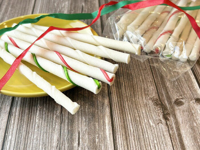 クリスマス特別企画!超お得な倍増パックのご案内 通常10本入りのところ、価格は据え置きで2倍の20本を詰め込んだ、クリスマスシーズンだけの大変お得な限定商品です。 ●確かなデンタルケア効果 噛むことで歯垢・歯石の除去(歯磨き効果)をサポートし、虫歯予防と歯茎のマッサージにも効果的なデンタルガムです。 良質な牛皮を使用し、しっかりとした噛みごたえ。 よく噛むことであごや歯茎の運動になり、唾液の循環を促進し、胃腸の働きを助けます。 ビスケットなどのおやつに比べて給与量が少なく済むため、ダイエット中のワンちゃんにもおすすめです。 ●安心の自然素材と低カロリー設計 アメリカのホールサム条約に基づき「アメリカ連邦・州」の規定調査に合格した商品です。 健康を考えた素材選びと配合で、安心してお与えいただけます。 脂質・カロリーが低く抑えられ、ビタミン・ミネラルが豊富に含まれています。 【原材料】:牛皮、天然着色料(紅花、ミント) 【安全性】:BHA・BHT・エトキシキンなどの人工保存料や人工香料・人工着色料は一切不使用。化学薬品などの添加物も一切使用しておりません。 【栄養価】:カロリー:346 kcal/100g(1本あたり 17 kcal) ●クリスマスの特別なデザイン 赤と緑のクリスマスカラーに彩られたボーンは、天然由来の着色料を使用しているため安全です。 赤色:紅花 緑色:ミント ●製品情報 ・内容量:20本入り(通常版の2倍!) ・原産国:アメリカ