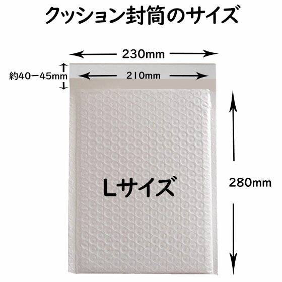 ■製品の詳細情報■ ★要注意★ 宅配便で発送・メール便不可 規格 【Lサイズ】 外寸:約280x230mm 内寸:約280x210mm ベロ:約4cm 誤差範囲±0.5cm 素材 ポリエチレン、PET膜 生産国 中国 商品について 用途例はあくまでも目安です。必ず実寸サイズをご確認ください。 マチが無いため、厚みのある物を入れる場合は特にお気をつけ下さい。 作業性の面からぴったりのサイズよりも1つ上のサイズをおすすめいたします。 クッション封筒(緩衝材つき封筒)封緘シールつき荷物を衝撃から守るクッション (緩衝材・エアキャップ付き)が内側に付いた。 ウィンバッグやポップエコのような白色クッション封筒です。 封かんシールつき(糊付き)で別途梱包テープなどが不要で作業効率アップ。 ※輸入品つき、一部内部気泡のつぶれ・汚損などがある場合がございます。 ※万一使用不可の製品が混入していた場合、交換、もしくは次回送付時に調整いたします。予めご了承下さい。 送料無料 クッション封筒 PE 耐水タイプ 緩衝材・テープつき封筒で簡単に発送