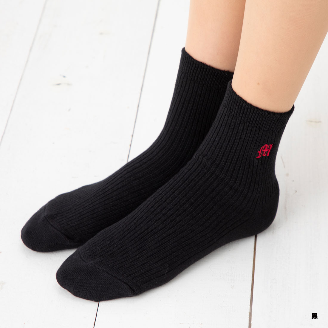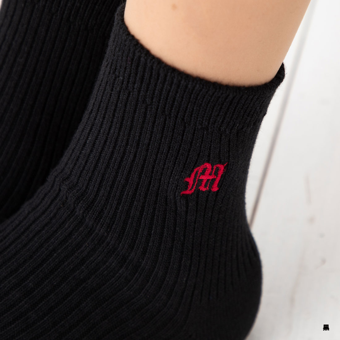 Point Me スクールソックス 13cm丈 Mロゴ ワンポイント刺繍 23-25cm (紺・黒) 靴下 レディース イニシャル 未来 kw-sc-05