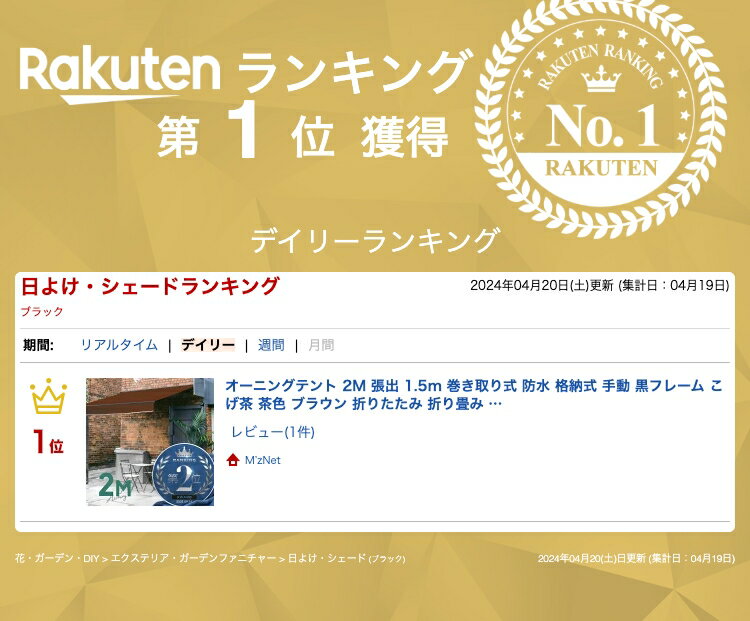 商品説明お手頃な価格で高品質。人気のオーニングテント。幅2メートル、最大張り出し時1.5メートル。テントの傾斜角度が調整できます。(左右のボルト2本で調整します)巻き上げトラブルの少ないパンタグラフ式でスムーズに折りたたみが可能です。頑強なスチールパイプ使用しておりますので強度・耐久性も抜群。テント生地には耐候性の高いターポリンキャンバス生地を採用しています。 ・説明書を同封いたします。・サイト内の動画でも施工方法をご覧いただけます。※youtube にて オーニング施工動画でも検索できます。・こちらの商品は大型サイズ商品となり地域別に別途大型送料がかかります。・離島に関しては配送料が地域により異なりますのでご購入前にお問い合わせください。・配送日・時間帯指定・同梱不可となります。商品内容■ 本体■ 壁付け取り付け金具 ×2個(アンカーボルトコンクリート壁用付属)■ 張り出し調整棒※ハンドルは位置は左固定となります。商品詳細■ カラー・ 生地色 : こげ茶 ブラウン (生地番号/T4516) ・ フレーム: ブラック■ サイズ・ 幅 : 2m ・ 張出 : 1.5m ■ 本体重量 : 約20kg注意事項■木造や2X4や軽量鉄骨などの家屋にお取り付けの場合は、必ず構造材など太い柱や梁に固定して下さい。構造により、壁厚が異なりますので、必要な長さのタッピングビスを別途ご用意下さい。■タッピングビスで直接ねじ込むと外壁が破損する場合がありますので 必ず下穴を開けてから作業して下さい■台風や大雨・強風及び突風の時は折り畳んでご使用ください。■ 本ウェブサイトに掲載されている商品の色と実際の商品の色とは、ご使用されるモニターまたはモニターの設定の違い等により、相違がある場合があります。■ 脱着の不備(費用)・過失傷害・事故・破損等による返品や損害請求には一切応じられません。■ 輸入品につき、商品に小傷・汚れなどがある場合がございます。保証の有無■保証はございません。■商品初期不良のみ商品到着後7日以内対応させていただきます。■お客様都合での返品は送料、その他手数料をご負担いただきます。関連商品オーニングテント 2M 張出 1.5m 巻き取り式 防水 格納式 手動...オーニングテント 2M 張出 1.5m 巻き取り式 防水 格納式 手動...オーニングテント 2M 張出 1.5m 巻き取り式 防水 格納式 手動...33,700円33,700円35,000円オーニングテント 2M 張出 1.5m 巻き取り式 防水 格納式 手動...オーニングテント 2M 張出 1.5m 巻き取り式 防水 格納式 手動...オーニングテント 2M 張出 1.5m 巻き取り式 防水 格納式 手動...35,000円35,000円35,000円オーニングテント 2M 張出 1.5m 巻き取り式 防水 格納式 手動...オーニングテント 2M 張出 1.5m 巻き取り式 防水 格納式 手動...オーニングテント 2M 張出 1.5m 巻き取り式 防水 格納式 手動...35,000円35,000円35,000円