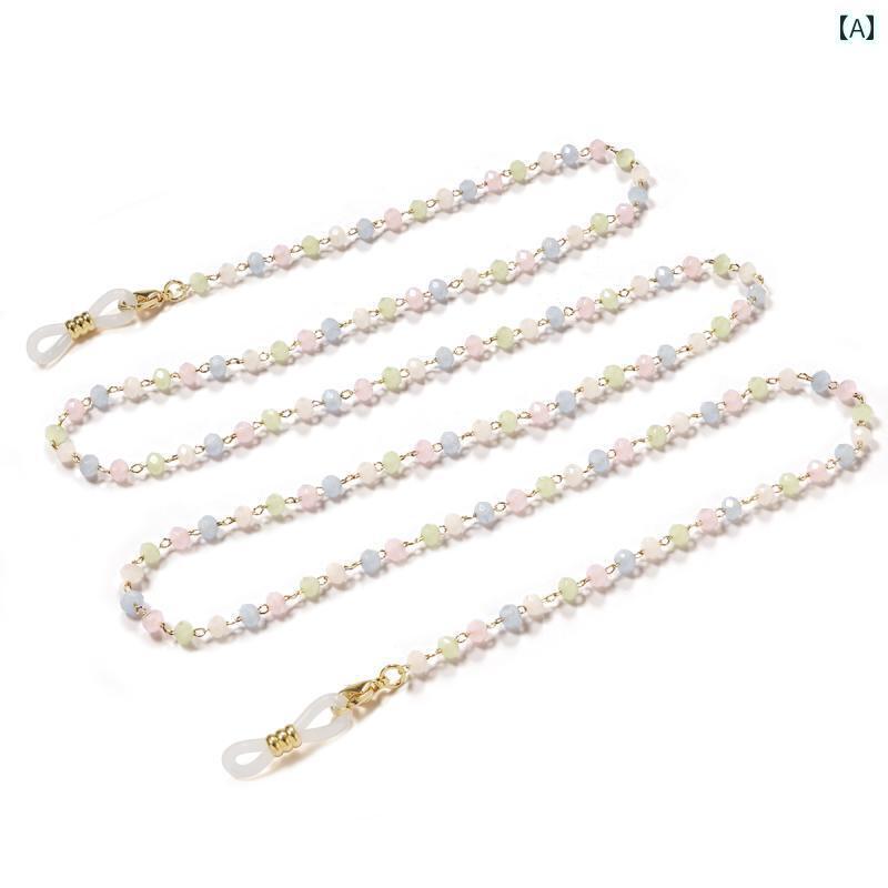 メガネ チェーン 色褪せにくい 混合色 クリスタル ガラス ロープ シンプル 単品 ネット 吊り下げ チェーン 金属製 レトロ メガネ 小物 サングラス ストラップ 老眼鏡 落下防止 マスク おしゃれ かわいい