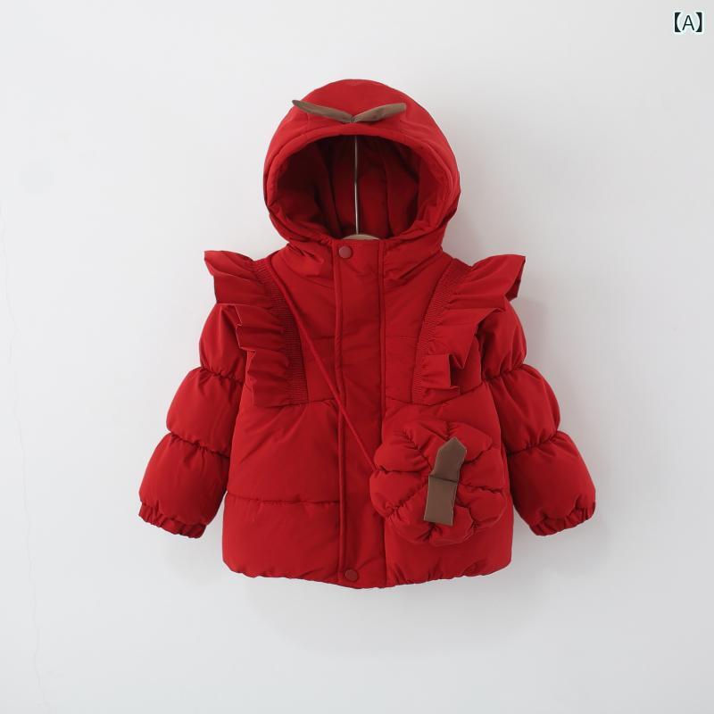 ・カテゴリ: キッズ中綿ジャケット・性別: 女の子・スタイル: 韓国風・対象年齢: 乳幼児(1~3歳)・生地加工: 柔軟加工・中綿: ポリエステル・厚さ: 厚手・柄: 無地・デザイン要素: かわいい、トレンド・生地名: 綿混紡・主な素材: ポリエステル95%・裏地素材: ポリエステル95%・開閉タイプ: ファスナー・カラー展開: レッド、ブラック・サイズ展開: 80cm、90cm、100cm、110cm、120cm