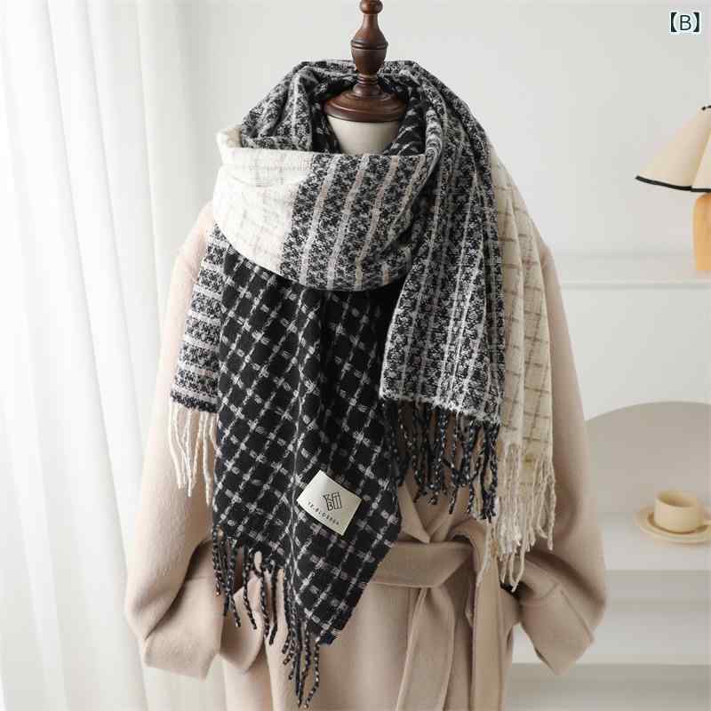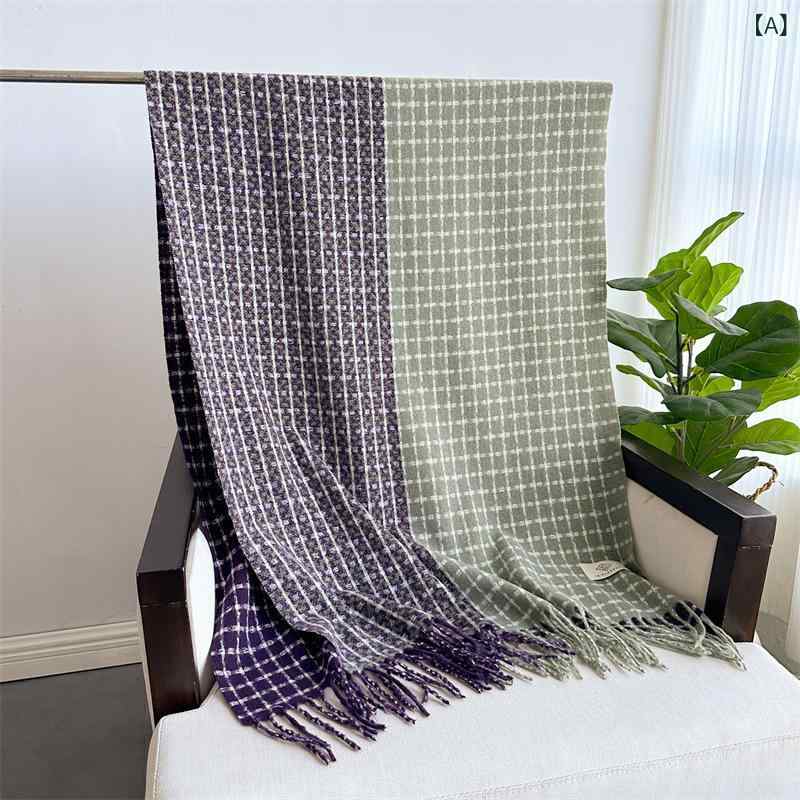 ・織り方: ツイル・デザイン要素: ストライプ、四角、幾何学模様・機能: 保温・シーズン: 冬・丈のタイプ: スタンダード・カラー展開: 紫緑、黒白、ネイビー、カーキブラウン、パープル、ダークブラウン、レッド・サイズ: 208x66cm(フリンジ含む)・主な素材: ポリエステル100%・生地: フェイクカシミヤ・スタイル: ビジネス、カジュアル、エレガント、シンプル、着回し、通勤・加工: プリント