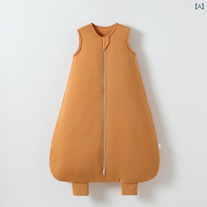 寝袋 ベビー キッズ スリーパー 足付き 春秋冬 厚手 寝冷え防止 オールシーズン モダール 綿 ベストタイプ ファスナー 新生児 0歳 1歳 子供 無地