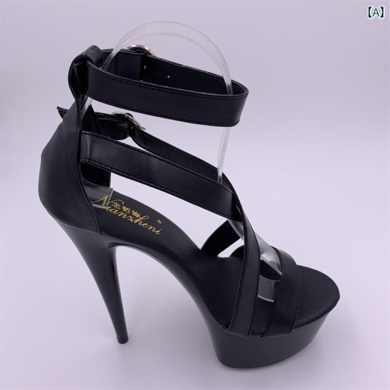 サンダル レディース 夏用 15cmピンヒール プラットフォーム ストラップ オープントゥ ナイトワーク キャバ嬢 パーティ 欧米風 ブラック 黒
