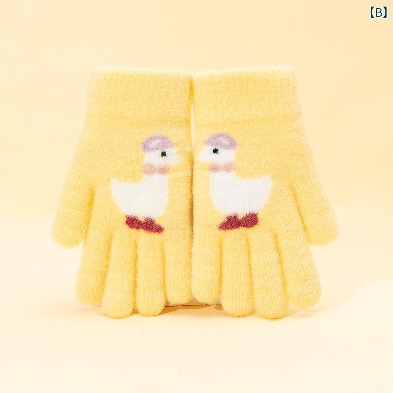 手袋 キッズ 女の子 冬用 保温 厚手 防寒 五本指 毛糸 かわいい 小学生 アウトドア 4-11歳向け カラーバリエーション(x2)