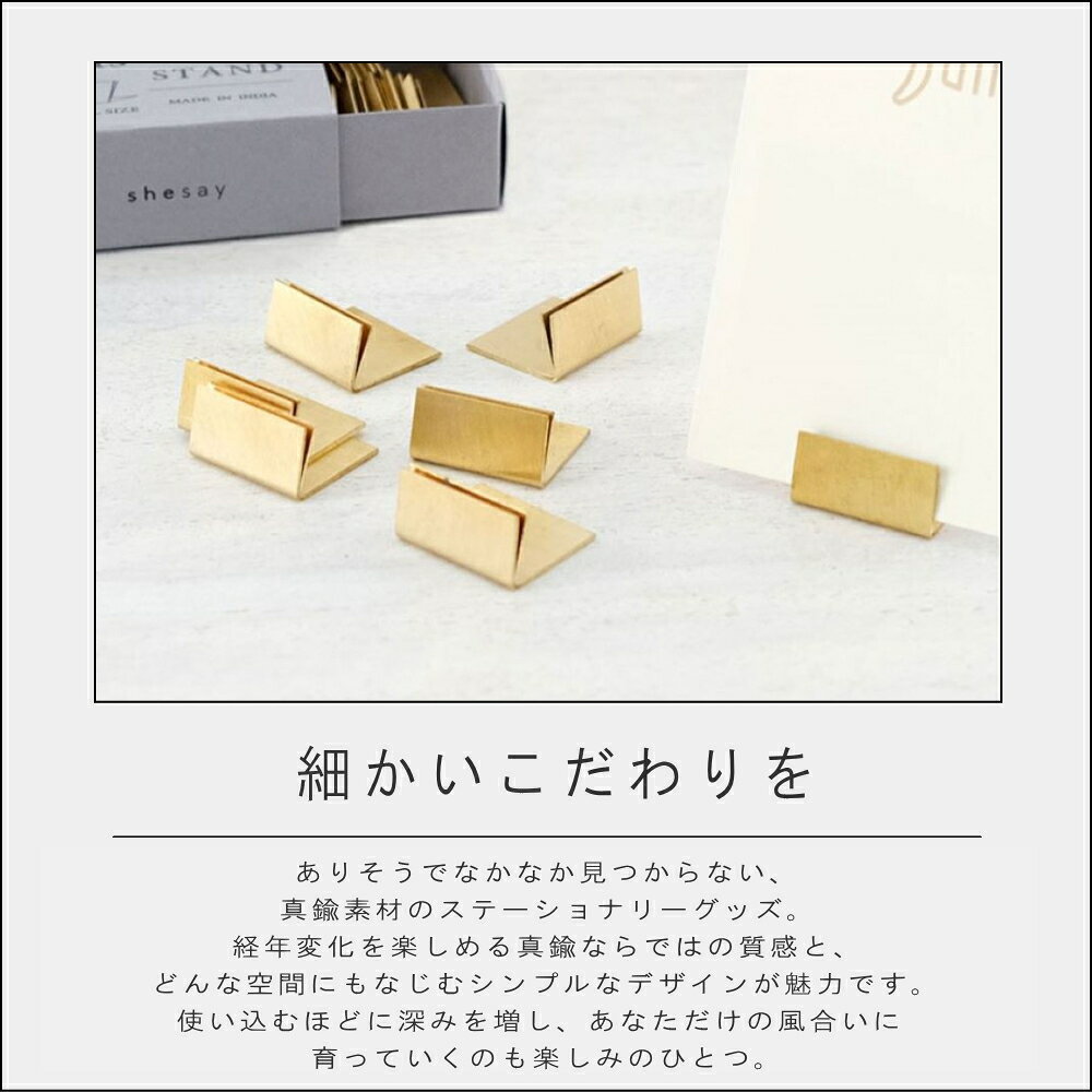 【特典付】【メール便送料無料】【ポイント 10倍】( shesay BRASS ブラス カードスタンド Sサイズ 20個入り ) 真鍮 ステーショナリー グッズ ポストカード メモスタンド 作品 値札 お店 席札立て 結婚式 写真立て おしゃれ シンプル マラソン 買い回り ポイント消化 306085