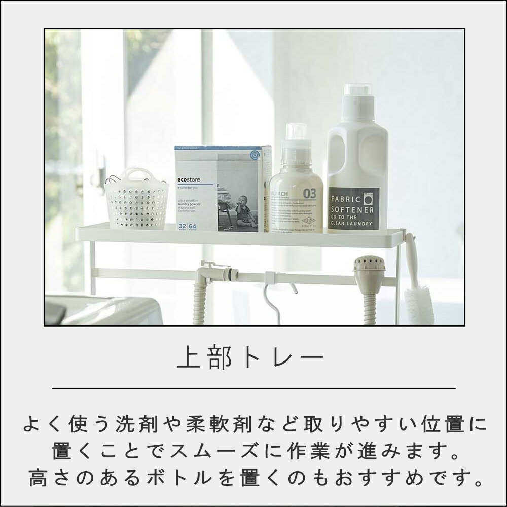 こちらの商品はメーカー(奈良県)より直送商品となっております。 配送は佐川急便でのお届けとなります。 下記注意事項をご確認くださいませ。 メーカー直送商品のため、ご注文確認後 メーカーに在庫の確認をいたしております。 ご注文のタイミングにより、欠品の場合もございますので あらかじめご了承くださいますようお願い申し上げます。 こちらは送料無料商品(メーカー直送)となります。 通常商品(当店より発送・送料別)と一緒に ご注文いただいた場合は送料を別途請求させていただきます。 ラッピングの対応はしておりません。 同梱の対応はしておりません。 代金引換は対応しておりません。 メーカー直送商品のため、日時指定はできません。 メーカー直送商品のため、お客様都合による返品・交換はできません。 メーカー直送商品のため、納品書・領収書の同梱はしておりません。 納品書・領収書が必要な場合は備考欄に記載をしていただき 当店より郵送させていただきます。洗濯 用品 収納 ワゴン タワー 奥行き約15cmのスリム設計で省スペースに設置でき、キャスター付きなので移動もラク。 付け外しできるホルダーやフックで、自由にアレンジが可能。 洗濯用洗剤・小物類などのランドリーグッズ、収納場所に困りがちなハンガーや給水ホース、バスブーツもすっきりまとめて収納できます。 商品名 洗濯 用品 収納 ワゴン タワー サイズ 約W50×D15×H91cm (キャスター含む) 【内寸】上部トレー・下部トレー:約W49×D14cmフック (小)約1cmフック(大)約6cm引っ掛けホルダー:約W24×D6.5cm 品質表示 本体:スチール(粉体塗装) キャスター:ナイロン 付属品 六角レンチ×1・スパナ×1・フック(小)×4 フック(大)×4・引っ掛けホルダー×1・転倒防止チェーン×1 耐荷重 上部トレー:約3kg 下部トレー:約5kg フック(小):フック1つあたり約250g フック(大)フック1つあたり約1kg 引っ掛けホルダー : 約500g お手入れ方法 ●製品に付いた汚れや水分は乾いた布で拭き、しっかり乾かしてください。長時間、付着したまま放置すると錆の原因となります。 ●シンナーベンジン等の薬品を使用すると変色や変形の原因となりますので、ご使用はお避けください。 ご使用上の注意 ※転倒・落下・ケガ・破損・変形・変色・接地面のキズ・錆などの原因となりますので、以下の点にはご注意ください。 ●製品本来の用途以外でのご使用はお止めください。 ●製品は屋内でご使用ください。 屋外でのご使用は変色や錆の原因となりますので、ご使用はお避けください。 ●不安定な場所を避け、平らな場所に設置してください。 ●組み立て後、 製品が固定され安定しているかどうか、 必ずご確認の上ご使用ください。 ●製品を移動させる際は、引き摺って接地面をキズつけないよう注意してください。 ●収納する際は、製品に負担をかけないよう丁寧に取り扱ってください。また、重量の偏りがないよう、バランスよく収納してください。 ◆収納するもののサイズや形状によっては収納できないものもあります。 ●ぶらさがったり上に登ったり、ゆすったり、寄りかかったりしないでください。転倒してケガや破損の原因になります。 ●耐荷重は必ずお守りください。 ●耐荷重制限内でも、大きな衝撃により製品や置いているものが転倒・落下し、ケガや破損の原因となることがありますのでご注意ください。 ●貴重品や壊れやすいもの、危険なものは収納しないでください。 ●ネジは使用中にゆるみがでる場合がありますので定期的にゆるみを点検してください。ゆるみが発生した場合は、ネジをしっかり締め直して固定してください。 ●火が直接あたる場所、直射日光のあたる場所では使用しないでください。 ●転倒防止チェーンは製品自体の転倒・落下を防ぐもので収納したものの転倒・落下を防ぐものではありません。 ●天災などの不可抗力やお客様のご使用上の不注意・修理・改造による故障・損壊につきましては責任を負いかねますのでご了承ください。