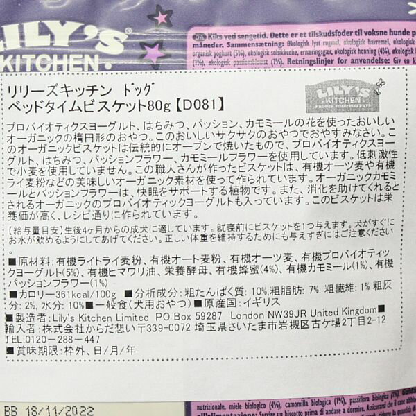 最短賞味2026.9・リリーズキッチン 犬 ベッドタイムビスケット80g lid081成犬用おやつ 正規品
