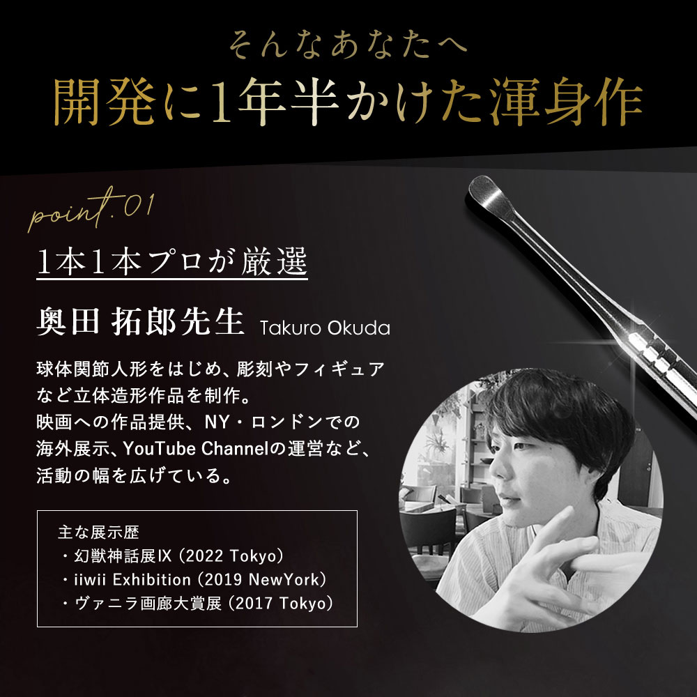 DePesスパチュラ粘土へらステンレス11本セット奥田拓郎監修モデルは、精密な作業を要求するアーティストやクラフト愛好家に最適なツールセットです。このセットは、奥田拓郎氏の監修のもと、特別な形状が採用されており、細部の修正から大胆な形状作りまで、あらゆるニーズに応える多様性を提供します。各スパチュラはステンレス製で、耐久性に優れ、長時間の使用にも適しています。 さらに、このセットには奥田拓郎氏による解説動画が付属しており、使用方法やテクニックを学ぶことができます。これにより、初心者からプロフェッショナルまで、より効果的にスキルを磨くことが可能です。エレガントなブラックのキャリングケースも含まれており、持ち運びや保管が簡単で、どこへでも持って行けます。 このツールセットは、粘土彫刻、陶芸、その他のクラフトプロジェクトに理想的で、創造性を最大限に引き出すための必需品です。奥田拓郎監修モデルを手に入れ、あなたのアート作品を次のレベルへと引き上げましょう。