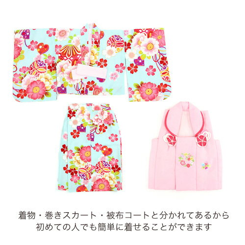 【レンタル予約状況】 2021年 ■3月5日〜3月10日 予約済 *上記の日程の間は予約不可。 日程の記載がない場合は予約可能です。 ※こちらはレンタル商品です※ >>レンタル商品ご利用ガイドはこちら 一歳の女の子に被布着物レンタルセット!せっかくのお祝いの日だから、いつもより可愛くしてあげたいですね!多くの家族の晴れの日を演出する簡単二部式着物のセットでお届けします。ひなまつり・初節句・お正月ご兄弟の七五三やお祝い事など…様々なシーンにお使いいただけますよ。-セット内容-着物・被布コート・巻きスカート【素材】(着物・被布コート・巻きスカート共に)表地…ポリエステル100%裏地…ポリエステル100%【サイズ】●着物身丈…約29.5cm裄…約34.0cm袖丈…約32.0cm●被布コート身丈…約37.5cm●被布コート巻きスカート…約45.0cm ※二部式なので上下でサイズ調節が可能です。上記のサイズは目安としてご参考ください。 ※レンタル商品のため、お客様が身上げ・肩上げなど衣服を加工することはできませんのでご了承くださいませ。※キャンセルについてご注文日・ご使用日によりキャンセル料がかかる場合がございます。弊社よりキャンセル料金をご連絡させて頂きました日より1週間以内のお振込みをお願いしております。※こちらは1歳用被布着物セット レンタル商品です※ レンタル予約状況を確認いたしまして、 レンタル可・不可のご連絡をさせていただきます。 1歳女児用 簡単着付けの二部式着物!初節句・ひなまつり・お食い初めなど…なでしこが大切な記念日を最高の思い出にするお手伝いをさせて頂きます。 淡い水色の着物とかわいらしいピンクの被布。 金の縁取りが豪華で桜の花に鞠が隠れる可愛らしく華やかな柄です。 被布には小桜の透かしが入っています。 晴れやかなお祝いの一日にぴったりなデザインですよ。 →他の1歳用着物レンタルはこちら できるだけ実物に近いように撮影・画像処理をさせていただいておりますが、お客様のモニター環境などにより実際の商品とカラーが 若干異なって見える場合がございます。カラーやサイズなどのご心配がございましたら遠慮なくお問い合わせください。 七五三着物セット 身丈 袖丈 裄丈 着物 29.5cm 32.0cm 34.0cm 被布コート 37.5cm - - 巻きスカート 45.0cm - - 素材 表地・裏地 ポリエステル100% ・ セット内容 ・ 着物・被布コート・巻きスカート ・ 備考 ・ ※二部式なので上下でサイズ調節が可能です。上記のサイズは目安としてご参考ください。※商品の柄の配置は写真とまったく同じではございません。予めご了承下さいませ。