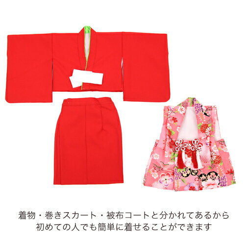 【レンタル予約状況】 2021年 ■12月28日〜1月8日 予約済 *上記の日程の間は予約不可。 日程の記載がない場合は予約可能です。 ※こちらはレンタル商品です※ >>レンタル商品ご利用ガイドはこちら 一歳の女の子に 被布着物レンタルセット! せっかくのお祝いの日だから、いつもより 可愛くしてあげたいですね! 多くの家族の晴れの日を演出する 簡単二部式着物のセットで お届けします。 ひなまつり・初節句・お正月 ご兄弟の七五三やお祝い事など… 様々なシーンにお使いいただけますよ。 -セット内容- 着物・被布コート・巻きスカート 【素材】 (着物・被布コート・巻きスカート共に) 表地…ポリエステル100% 裏地…ポリエステル100% 【サイズ】 ●着物 身丈…約27.5cm 裄…約37.0cm 袖丈…約32.5cm ●被布コート 身丈…約36.5cm ●巻きスカート 身丈…約36.0cm ※生地の染めに画像の様な斑点がある場合がございますが、 生産過程上のものであり不良ではございません。 ※二部式なので上下でサイズ調節が可能です。 上記のサイズは目安としてご参考ください。 ※商品の柄の配置は写真とまったく同じではございません。 ※レンタル商品のため、お客様が 身上げ・肩上げなど衣服を加工することは できませんのでご了承くださいませ。※キャンセルについてご注文日・ご使用日によりキャンセル料がかかる場合がございます。弊社よりキャンセル料金をご連絡させて頂きました日より1週間以内のお振込みをお願いしております。※こちらは1歳用被布着物セット レンタル商品です※ レンタル予約状況を確認いたしまして、 レンタル可・不可のご連絡をさせていただきます。 1歳女児用 簡単着付けの二部式着物!初節句・ひなまつり・お食い初めなど…和なでしこが大切な記念日を最高の思い出にするお手伝いをさせて頂きます。 赤色の無地がすっきりと可愛い着物。 独特の光沢を放つ生地が豪華でめでたい印象です。 ピンクの被布には花車と牡丹が可愛らしく華やか。 晴れやかなお祝いの一日にぴったりなデザインですよ。 →他の1歳用着物レンタルはこちら できるだけ実物に近いように撮影・画像処理をさせていただいておりますが、お客様のモニター環境などにより実際の商品とカラーが 若干異なって見える場合がございます。カラーやサイズなどのご心配がございましたら遠慮なくお問い合わせください。 七五三着物セット 身丈 袖丈 裄丈 着物 27.5cm 32.5cm 37.0cm 被布コート 36.5cm - - 巻きスカート 36.0cm - - 素材 表地・裏地 ポリエステル100% ・ セット内容 ・ 着物・被布コート・巻きスカート ・ 備考 ・ ※二部式なので上下でサイズ調節が可能です。上記のサイズは目安としてご参考ください。※商品の柄の配置は写真とまったく同じではございません。予めご了承下さいませ。