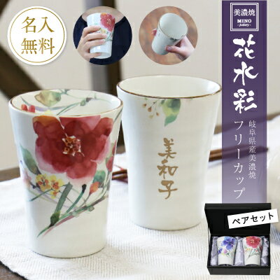 湯呑み 名入れ 【 美濃焼 ・花水彩 フリーカップ ペアセット 】 プレゼント ペアギフト おしゃれ 実用的 日本製 電子レンジ対応 タンブラー 父親 母親 おじいちゃん おばあちゃん 両親 夫婦 誕生日 結婚記念日 結婚祝い 金婚式 お祝い 送料無料 翌々営業日出荷