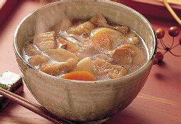 新潟の具沢山田舎汁 けんちん汁 けんちん汁は昔中国から伝わり、日本では禅寺で始まった料理ですが、現在では家庭料理のおふくろの味として親しまれています 大沢加工のけんちん汁は香り豊かな山菜「わらび」椎茸・鶏肉・油揚げ・こんにゃく・車麩・他新鮮な野菜を美味しく煮込みました。 食卓にアツアツのけんちん汁を御賞味下さい うどん(冷凍・乾麺共にOK)や蕎麦を入れて主食に、とろみをつけて丼にも御利用いただけます。 味は濃い目なので、お好みの野菜を足しても美味しく召し上がりいただけます。 (株)ゆのたに(旧大沢加工)の山菜入り田舎汁 けんちん汁 2号缶 1缶3〜4人前820g 主原料:大根、人参、じゃがいも、椎茸、ごぼう、わらび、醤油、こんにゃく、 車麩、鶏肉、植物油脂、油揚げ、 砂糖、ブドウ糖果糖液糖、カツヲ節エキス、肉エキス、(豚肉を含む)、食塩、 アミノ酸等、 アレルギー:大豆、小麦、鶏、豚