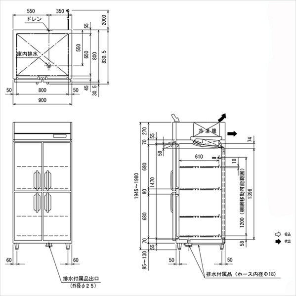 業務用タテ型冷蔵庫 フクシマガリレイ GRD-090RX-F 冷蔵787L センターフリー ノンフロン冷媒 インバーター制御 単相100V