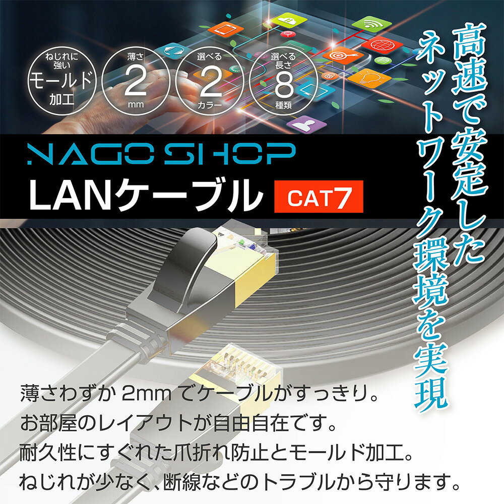 フラット LANケーブル cat7 5m 送料無料 即発送【1年保証】2.0mm厚 10Gbps 薄型フラットケーブル cat6 兼用 分岐 自作 任天堂 switch PS4 ps5 ゲーム機 パソコン カテゴリー7 コンピューター 家庭用 サーバー 企業用
