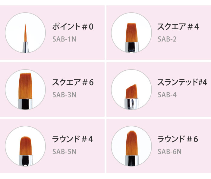 タイプ ポイント#0(mur-SAB-1N)スクエア#4(mur-SAB-2N)スクエア#6(mur-SAB-3N)スランテッド#4(mur-SAB-4)ラウンド#4(mur-SAB-5N)ラウンド#6(mur-SAB-6N) サイズ 長さ:約17.8cm(キャップ収納時) 素材 毛質:ナイロン 仕様 キャップ付き 生産国 中国 備考 ●本品をジェルネイルを塗布する以外の目的に使用しないでください。●小さなお子様の手の届かない所に保管してください。●ジェルをご使用後は必ずジェル用ブラシクリーナー(別売:NPC-1)で洗浄してください。 注意事項 ※デザイン、仕様等につきましては、予告なく変更する場合がございます。予めご了承下さい。※ご予約・お取り寄せ商品は、ご注文受付後にお客様ご注文分としてメーカーへ発注を致します為、基本的にキャンセルやご返品はお受けできません。※実際の商品の色になるべく近いかたちで掲載しておりますが、モニターの違いなどで実際の商品と色味が異なる場合がございます。予めご了承ください。※複数店舗を運営しておりますため、ご注文の入れ違い等で欠品などになってしまう場合がございます。万が一、発送が遅れる場合は、ご注文受付当日中にご案内差し上げます。誠に恐れ入りますがご了承くださいますよう、お願い申し上げます。※配送方法がポスト投函(メール便)でのお届けの場合、緩衝材を巻かずに発送する場合がございます(サイズ規定の都合上)ので、予めご了承下さい。 広告文責 エルスタイル(株) 092-725-1208BEAUTY NAILER サロンジェルブラシ(キャップ付き) キャップ付き!初心者さんにもおすすめのジェルブラシ キャップ付ジェルブラシです。ハートモチーフのキラっとかわいいデザインキャップがついて、使い勝手も◎!シェイプは全6種類。アートによって使い分けができます。●ポイント#0…ラインや細かなイラストなどのアートにぴったりな細筆●スクエア#4…トップやベース、カラーなどを塗るのに最適。チェック柄などのアートにも。●スクエア#6…広い面を塗るのに最適な平筆。フットネイルの塗布にも。●スランテッド#4…斜めにカットされたフレンチやグラデーションに最適です。●ラウンド#4…爪の細かい部分が塗りやすいオーバル型の穂先●ラウンド#6…広い面の塗りやエンボスアートに最適 ■キーワード:ビューティーネイラー/BEAUTYNAILER/SALON GEL BRUSH/サロン/キャップ/キャップ付き/塗りやすい/使いやすい/便利/ジェルブラシ/ジェルネイルブラシ/ジェル筆/ネイルブラシ/ネイル筆/ジェル用ブラシ/ネイル用ブラシ/ポイント/細筆/丸筆/平筆/ラウンド/スクウェア/スクエア/スクエアー/スクウェア/フレンチ/スランテッド/斜め/スマイルライン/塗り/塗る/爪/ネイル/ネイルツール/ネイルグッズ/ツール/ネール/セルフ/セルフネイル/セルフネイラー/セルフジェルネイル/スクール/ネイルスクール/ネイリスト/初心者/初めて/はじめて/4513105071302/4513105071319/4513105071326/4513105071340/4513105071357
