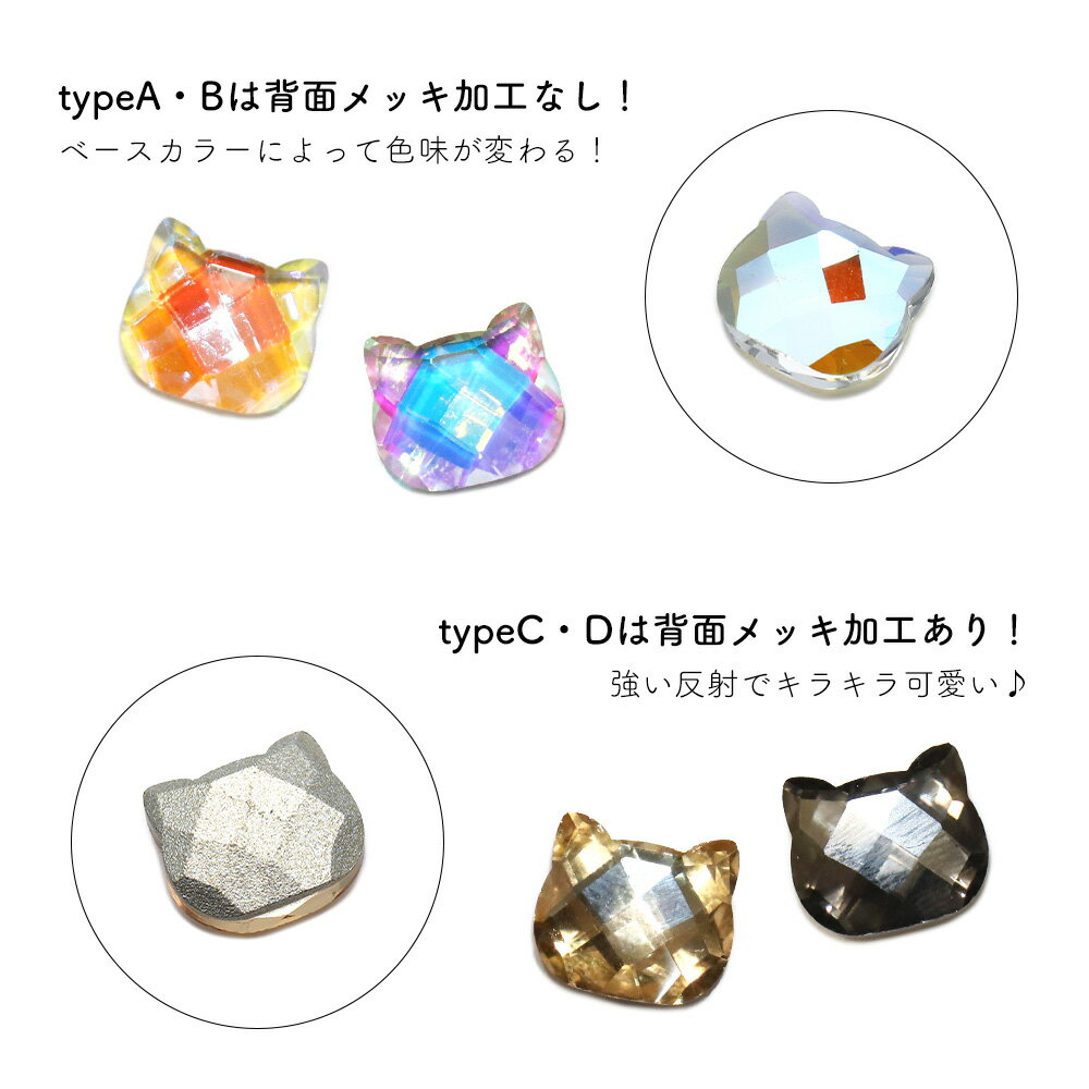 ラインストーン ガラス製 キャットストーン 全4タイプ ネコモチーフ セルフネイル ジェルネイル 推し活 デコ電