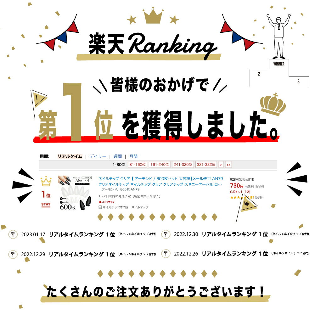 ネイルチップ クリア 【 アーモンド / 600枚セット 大容量】メール便可 クリアネイルチップ ネイルチップ クリア クリアチップ スキニーオーバル ロング ポイント フルカバー プレーン 練習用 サンプル 付け爪 カラーチャート