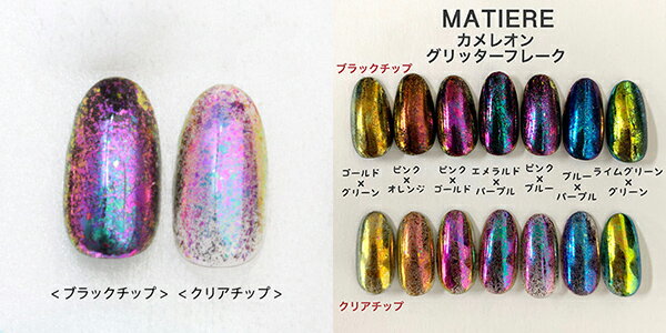 商品到着後レビューを書いて次回使える200円OFFクーポンGET!!光の当たり方でカメレオンのように色の見え方が変わるグリッターラメです。【使用方法】ベースジェルまたはカラージェル硬化後、未硬化ジェルの上からやさしく擦りつけるように塗布して下さい。ノンワイプジェルの上から擦りつけるように塗布してください。(の場合は粗めに、の場合は細かな仕上がりとなります。)※グリッターが軽く、舞いやすいので一度多量を塗布せずに、何回かに分けて塗布するようにしてください。また気になる方はジェルに一旦グリッターを混ぜてからご使用ください。内容量:0.1g