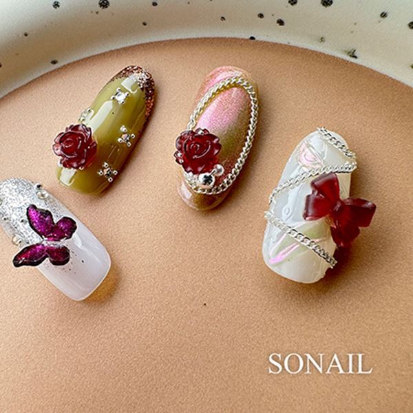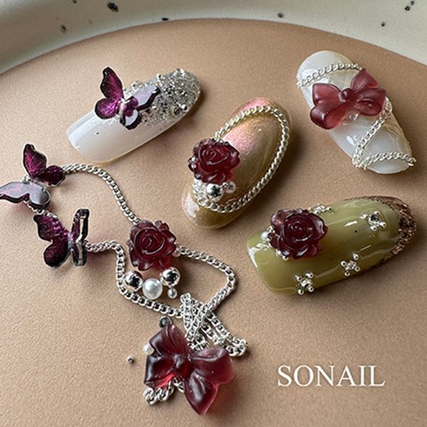 SONAIL ネイルパーツセット フラワー リボン バタフライ レッド FY001337