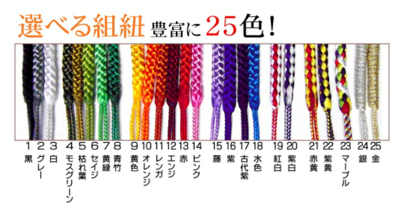 当店の根付け紐は、25色から選ぶことができ あなただけのオリジナルアクセサリーを作り上げることができます。 根付け紐は消耗品です。新しい色に変えることで、印象を変えてみてはいかがですか。 お好きな色を、1本単位で注文できるので お気に入りのコーディネートをお楽しみください。 手軽に取り付けられ、簡単に取り替えられます。 安心の日本製です。大切なストラップに スペアの組紐はいかがですか? 組紐は消耗品です。 「ひっ紐しか残ってないじゃん!(汗)」 大切にしていたストラップ。こうなってしまっては、ショック100倍。 長く使って頂きたいので、スペアの組紐をご用意いたしました。 業界最多の25色から選んで頂き、1本単位で購入頂けます。 必要な色を、必要な数だけご注文下さい。 ◎お問合せは、お気軽に・・・そうだ。店長のマルヤマに聞いてみよう!←クリック