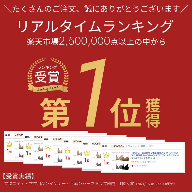 商品の素材、柄、デザイン等のご要望は承っておりません。備考欄にご希望を入力いただきましても、お応えすることは出来ませんのでご了承の上お買い求め下さい。「デザインおまかせ」である事を十分にご理解いただきますようお願いいたします。また、デザイン・カラーなどの在庫状況、再入荷予定日などのお問合せに対する返答はいたしかねます。 サイズ マタニティM マタニティL マタニティLL バスト 86〜94 93〜101 100〜108 こちらの商品は1セットまでネコポス可能です。 ※パッドは付属していません。 ●カラー:クリーム系…クリーム、イエロー、オレンジ ベージュ系…ベージュ、モカなど ピンク系…ピンク、ピーチ、レッドなど ブラック系…ブラック、グレーなど ミックス…配色は当店おまかせ。 ※ドット柄、チェック柄、ボーダー柄、その他の柄物の商品を含む場合があります。 ●サイズ:マタニティM/マタニティL/マタニティLL ●1セットのみネコポス可能 ●パッドの付属なし ※一部パッド内蔵のタイプあり ●パッドの挿入可能または不可能●産前産後用 ●タイ製・ベトナム製・中国製・日本製のいずれか ●サンプル品を含む場合があります。 ●モニタなどの環境により、実際の商品と若干の差が生じる場合があります。 ●デザインは当店おまかせになります。掲載写真とは別の商品をお届けする場合があります。 ●在庫に限りがある商品の為、複数のセットを一度または複数にわたってご注文の場合、商品が重複する場合があります。 ●小さな汚れ、縫い傷などがございますがこちらの商品は全て新品です。 ●特別価格商品につき、返品交換はお断りします。