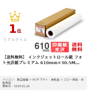 【日本製 工場直販】インクジェットロール紙 フォト光沢紙プレミアム 951b 610mm×30.5M 【印画紙ベース】 RCベース フォトペーパー 写真用紙 光沢紙 フォト光沢紙 大判インクジェット用紙 プロッター用紙 エプソン キヤノン 中川製作所 0000-208-951B