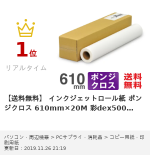 抜群の裏抜けと高発色のポンジクロス ※この商品は【代金引換】でのお支払に対応しておりません。その他のお支払い方法にてご注文をお願い致します。なお、ご注文の際に【代金引換】を選択できますが、受注後に変更をお願いするメールをお送りさせていただきます。予めご了承ください。 ※こちらの商品はご注文確認後より3営業日以内の出荷予定です。 商品名:ポンジクロス 彩dex500 サイズ:610mm×20M 内径:2インチ 入り数:1本 紙厚:130μ 坪量:60g/m2 対応インク:染料・顔料ポンジクロス(彩dex500) 抜群の裏抜けと高発色のポンジクロス。 薄手素材でのぼりやフラッグに最適。 6ヶ月程度の屋外使用に対応します。 彩dexは、セーレン株式会社のインクジェット専用クロス(布)メディアのブランド名です。 ■用途 のぼり フラッグ ■スペック 基材 紙厚 坪量 対応インク ポリエステル(ポンジ) 130μ(総厚260μ) 60g/m2(174g/m2) 染料 : - 顔料 : ◎ ■ラインナップ サイズ 品番 432mm×20M HS30 610mm×20M HS31 1067mm×30M HS33 紙管は全て2インチです。 ■推奨ドライバー設定 機種 用紙種類 エプソン SC/PXシリーズ MC/PMクロス<防炎> キヤノン iPFシリーズPRO/TX/TM/TAシリーズ 染・顔料 - 顔料 ポンジクロス3 HP DesignJetシリーズ 染・顔料 - 顔料 HPプレミアムマットフォト紙 プリンターから出力された用紙をカットする際は、プリンター機能のオートカットを使用せずハサミなどでカットしてください。プリンター故障の原因となる場合があります。 用途や印刷内容に応じて、プリンタードライバーの各種設定を調整することで品質の高いプリントが可能です。