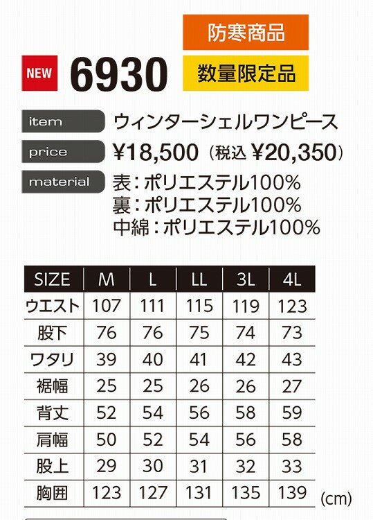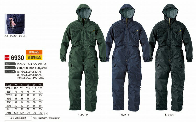 EVENRIVER イーブンリバー 6930 ウィンターシェルワンピース M L LL 3L 4L 5L 作業着 作業服
