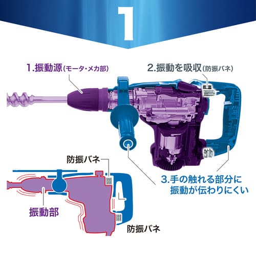 ※ 商品詳細 ※ メーカー マキタ makita 商品名 ハンマドリル(SDSマックスシャンク) 商品型番 HR5212C 特徴 コンクリート最大52mm(※41mm以上は市販ビット使用)の穴あけに対応。 コアビットは最大160mm(※121mm以上は市販品)まで対応可能。 AVT防振構造を搭載し、大型ながら快適で安定した作業を実現。 ハツリ作業にも対応し、トルクリミッタ装備で安全性にも優れたプロ仕様モデルです。 穴あけ能力 コンクリート:φ52mm(41mm以上は市販品) コアビット:φ160mm(121mm以上は市販品) 回転数 150~310min⁻¹(回転/分) 打撃数 1,100~2,250min⁻¹(回/分) 電源 単相100V 15A 1,430W 振動3軸合成値 新基準:9.9 m/s²(ハンマドリル)、7.5 m/s²(ハンマ) 旧基準:9.0 m/s²(ハンマドリル)、8.0 m/s²(ハンマ) 本機寸法(mm) 長さ599 × 幅140 × 高さ287 質量(kg) 約11.4kg コード長 5.0m 標準付属品 ストッパポール、ビット用グリス(100g)、カーボンブラシNo.175 主な機能 SDSマックスシャンク、ハツリ可能、AVT防振構造、トルクリミッタ