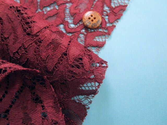 コードレース生地植物・エンジ系(135cm幅 1.5m)