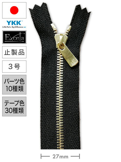 YKK 玉付きファスナー15cm アンティークゴールド イブシ ファスナー 手芸材料 バッグ材料 ネット限定価格